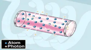 Atom composed of a nucleus and electron cloud. If an incident photon is energetic enough, it may be absorbed by an atom, raising the latter to an excited state. It was pointed out by Einstein in 1917 that an excited atom can be revert to the lowest state via two distinctive mechanisms: