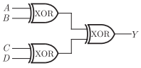 9. A,B,C, and D are input, and Y is the output bit in the XOR gate circuit of the figure below. Which of the following statements about the sum S of A,B,C,D, and Y is correct?
