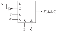 10. A 4 x 1 MUX is used to implement a 3-input Boolean function as shown in figure. The Boolean function F(A,B,C) implemented is