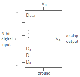 Consider a DAC system having N-bit digital input and an analog output. The block diagram is shown below.