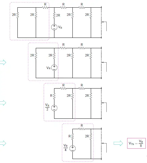 Therefore, Thevenin voltage for S1 = 1 is VTh (S1) = VR/8