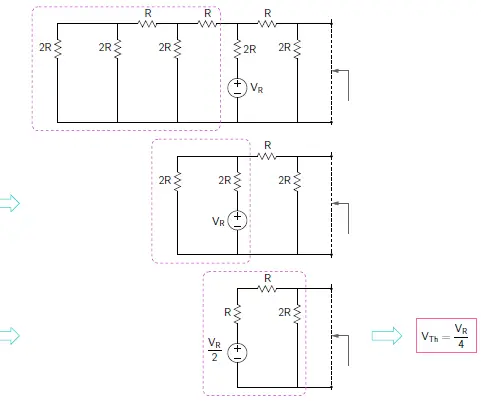 Therefore, Thevenin voltage for S2 = 1 is VTh (S2) = VR/4