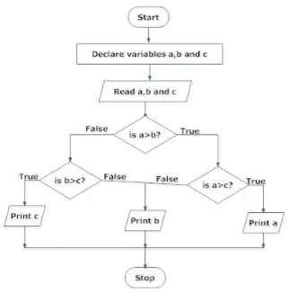 2. Draw flowchart to find the largest among three different numbers entered by the user.