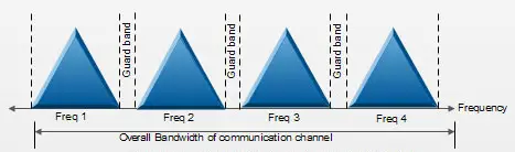 First of all, Each signal to be transmitted modulates with a different carrier frequency as shown in figure2. The modulation can be Amplitude Modulation(AM), Frequency Modulation(FM), Pulse Modulation(PM) or SSB.