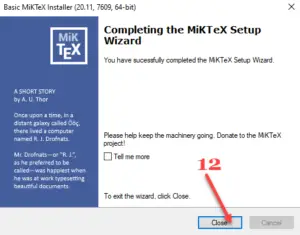 Step-12: Click Close button. Now your LaTeX editor installation is complete.