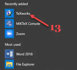 Step-13: To open the editor, search for TeXworks by clicking the windows start button as shown below.