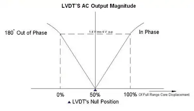 The characteristics of LVDT is given in figure-3 below. It is a graph of LVDT AC output magnitude and core displacement.