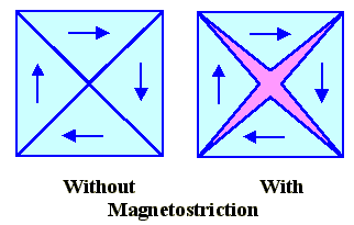- Magnetostriction is caused by rotation of domain of ferromagnetic material under the influence of the applied magnetic field.