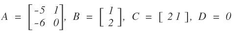 %Program to Obtain Transfer Function from Data %provided by electricalvoice.com clc clear all %obtain transfer matrix A=[-5 1;-6 0] B=[1;2] C=[2 1] D=[0] [num, den]=ss2tf(A,B,C,D) printsys(num,den)