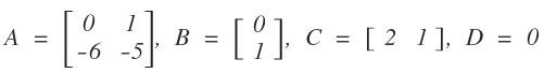 %Program to Obtain Transfer Function from Data %provided by electricalvoice.com clear all clc %obtain transfer matrix A=[0 1;-6 -5] B=[0;1] C=[2 1] D=[0] [num, den]=ss2tf(A,B,C,D) printsys(num,den)