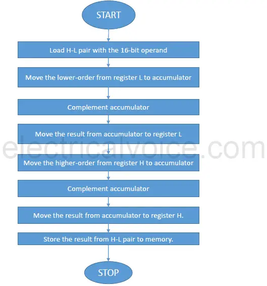 - There is no direct way to find 1’s complement of the 16-bit number. Therefore, this can be accomplished by finding the 1’s complement of two 8-bit numbers.