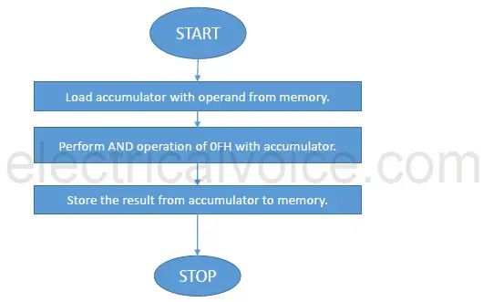 Q. Write an 8085 program and draw a flowchart to mask the lower nibble of an 8-bit number.(8085 Microprocessor Program)