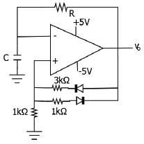 16. An oscillator circuit using ideal op-amp and diodes is shown in the figure.