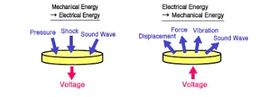 When a mechanical force or pressure is applied across the piezoelectric crystal, an electric potential appears across the surfaces of crystal. This generation of electric potential is due to displacement of electric charges. On the other hand, if a varying voltage is applied across the crystal, there will be a change in the dimensions of the crystal. This phenomenon is known as the piezoelectric effect. The piezoelectric effect is reversible as discussed above.