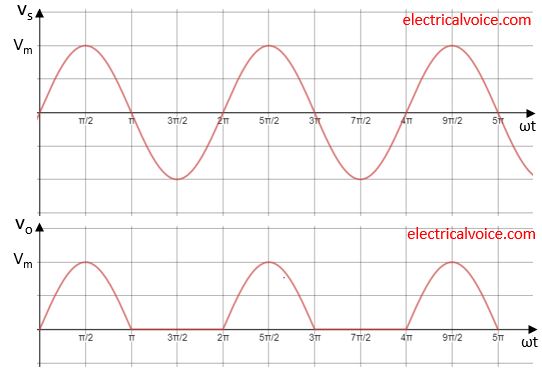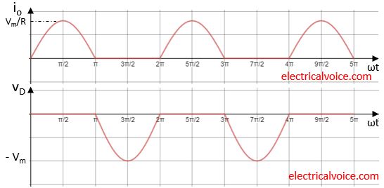 At ωt = π, the current through the diode falls to zero i.e. below zero and simultaneously a reverse voltage appears across the diode and it turns OFF.