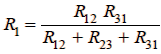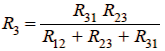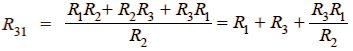 R3 is equal to the product of resistances connected at node 3 divided by the sum of three resistances in delta connection.