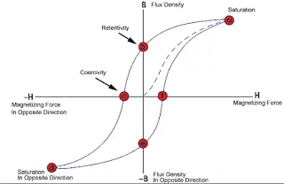 For example, a magnetic hysteresis is shown below. It is characteristics of flux density, B and magnetizing force, H.