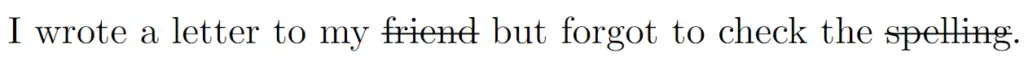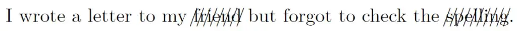 I wrote a letter to my \xout{friend} but forgot to check the \xout{spelling}.