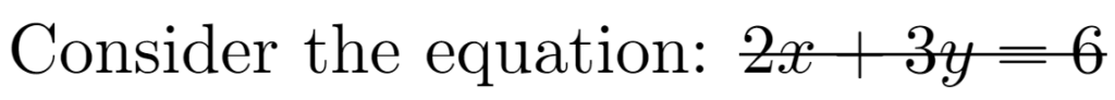 Consider the equation: \sout{$2x + 3y = 6$}