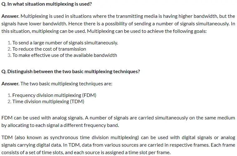 In order to transmit a large number of signals from one location to other, multiplexing is used. Communication channels are costly so it is not economical to use separate channel per signal. Signals can be transmitted over a single communication channel by either dividing the time slots between various signals and transmitting it in turns (time sharing) or by assigning different bandwidth to each signal and transmitting at once (frequency sharing).
