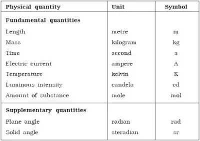 1. Fundamental quantities: Those physical quantities which do not depend upon any other quantity are known as fundamental quantities or base quantities. There are seven fundamental or base quantities in SI system. They are Length, Mass, Time, Electric current, Thermodynamic temperature, Amount of substance and Luminous intensity.