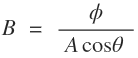 If Φ is the magnetic flux passing normally through a substance of area A then the magnetic flux density B is given by